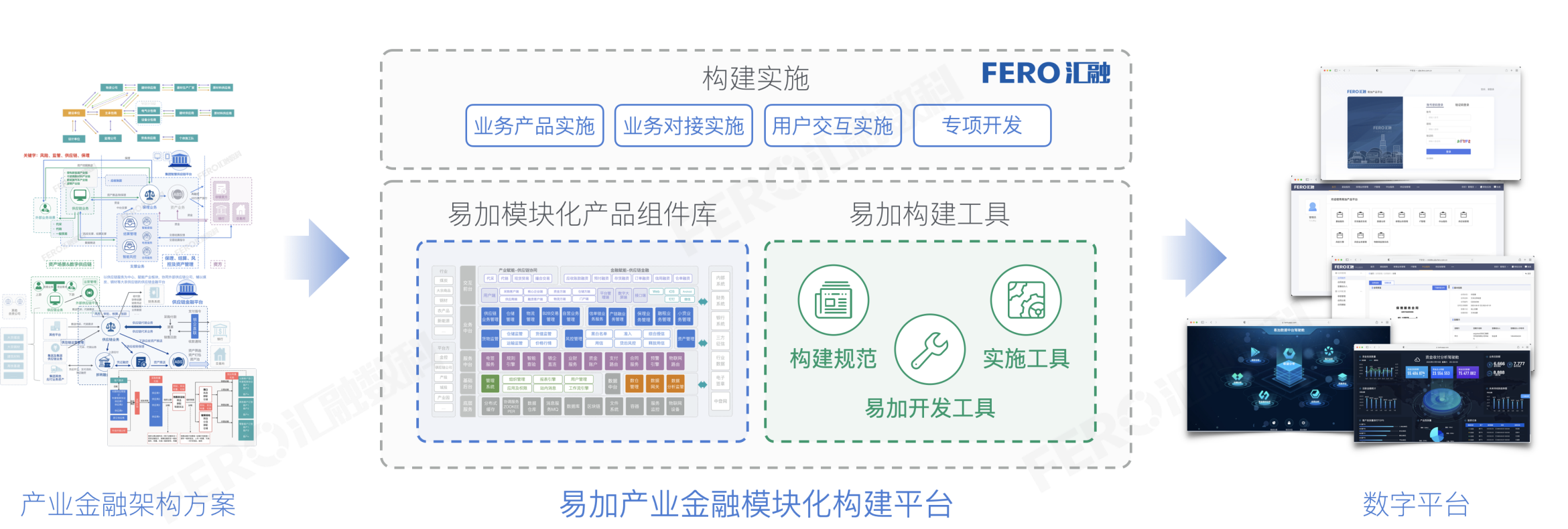 受产融的开展主体不同、业务方式不同、场景不同,需要各种业务模式的支持,易加的模块化构建平台支持产融多业务模式